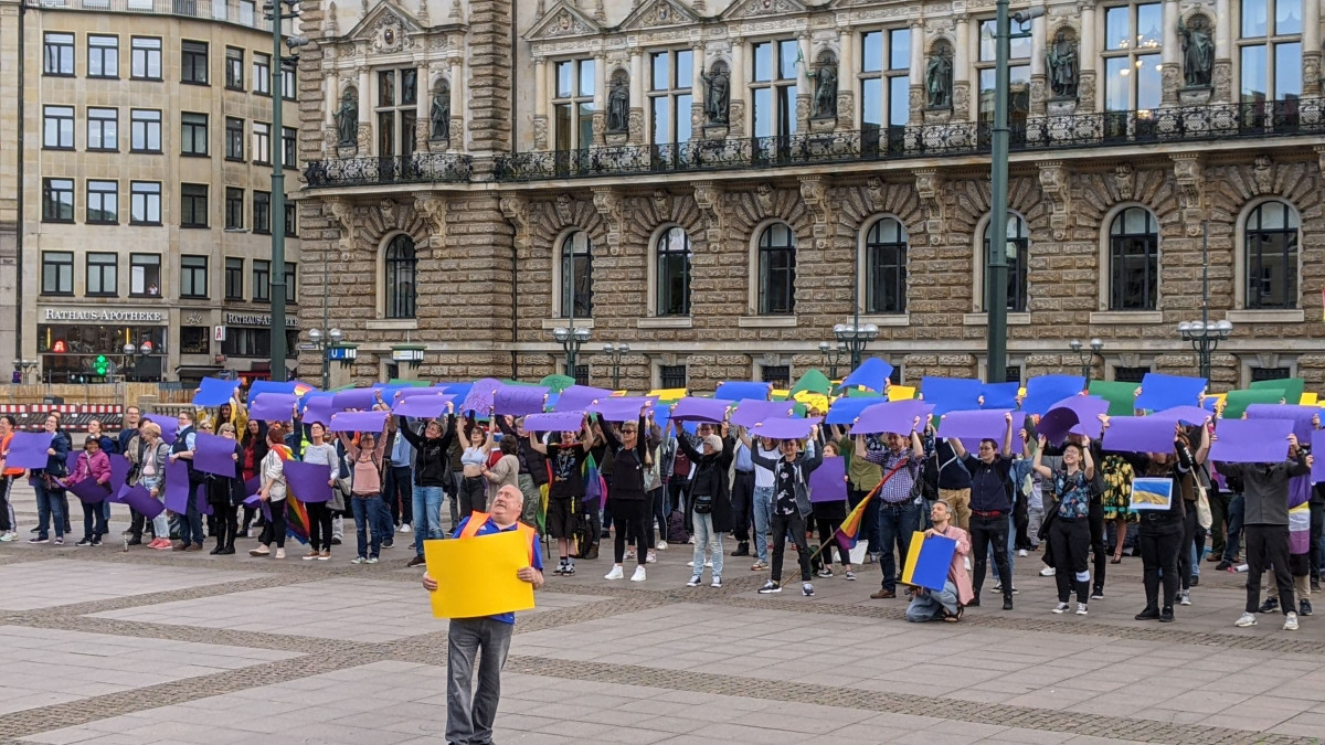 Das Magnus Hirschfeld Centrum am Borgweg feiert 40-jähriges Jubiläum. – Queer und Schule: Welche Aktivitäten gibt es an den Hamburger Schulen? – Menschliche Regenbogenflagge zum Rainbowflash am 17.5. auf dem Rathausmarkt mit der Zweiten Bürgermeisterin und dem US-Generalkonsul.
