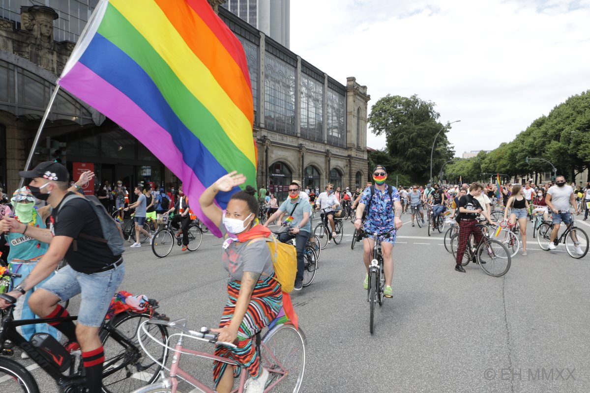 Wegen der Corona-Krise, findet die CSD-Demo als Fahrraddemo statt. Mit dabei sind der Erste Bürgermeister Peter Tschentscher und die Zweite Bürgermeisterin Katharina Fegebank.