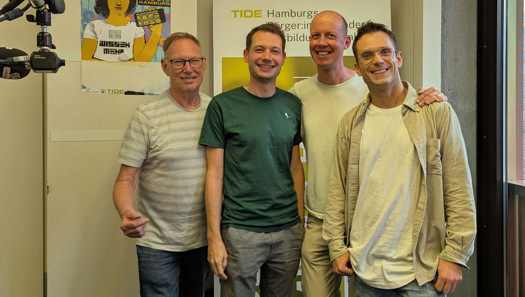 Radio im Queerformat. Studiogäste sind Manuel Opitz (Foto 2.v.li.) von Hamburg Pride zum Thema: „Was ist neu bei Hamburg Pride?“ und Sasa (re.), ein bisexueller Mann, der über seine Erfahrungen als Pastor in einer Adventgemeinde-Gemeinde erzählt. – Außerdem: Ab 19. Juli ist das Lesbisch-Schwule Stadtfest in Berlin. Thomas Diedrichs von Prideradio Berlin ist dort mit Programm auf der Queeren Medienbühne. – Moderation: Wolfgang Krömer und Stefan Kossanyi.