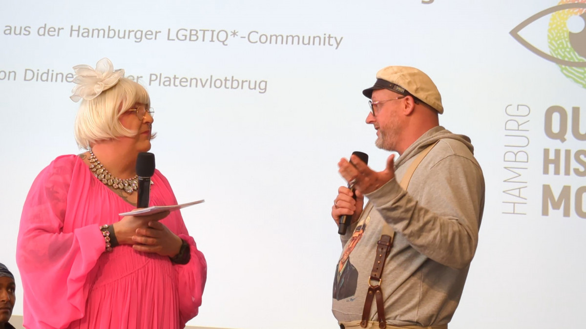 Lutz Johannsen hat es nicht in die Bezirksversammlung Hamburg-Mitte geschafft. – Ein Statement nach der Wahl. – Foto: Lutz (re.) beim Queer History Month mit Didine van der Platenvlotbrug.