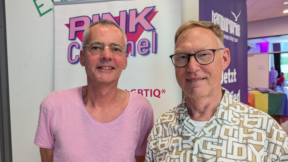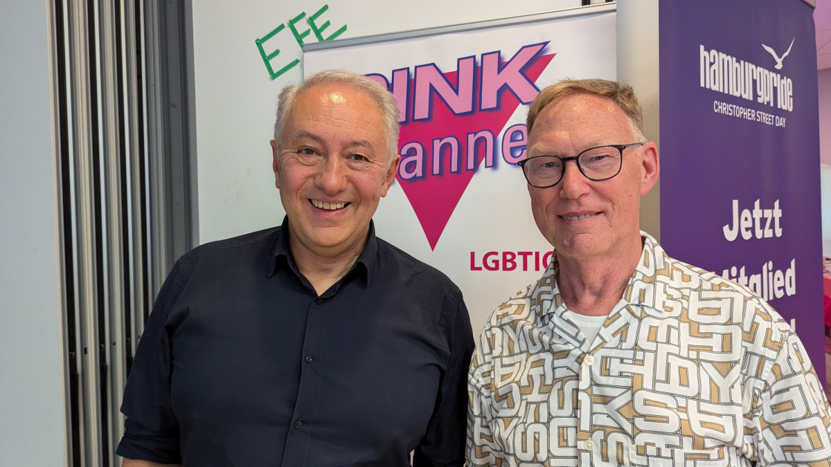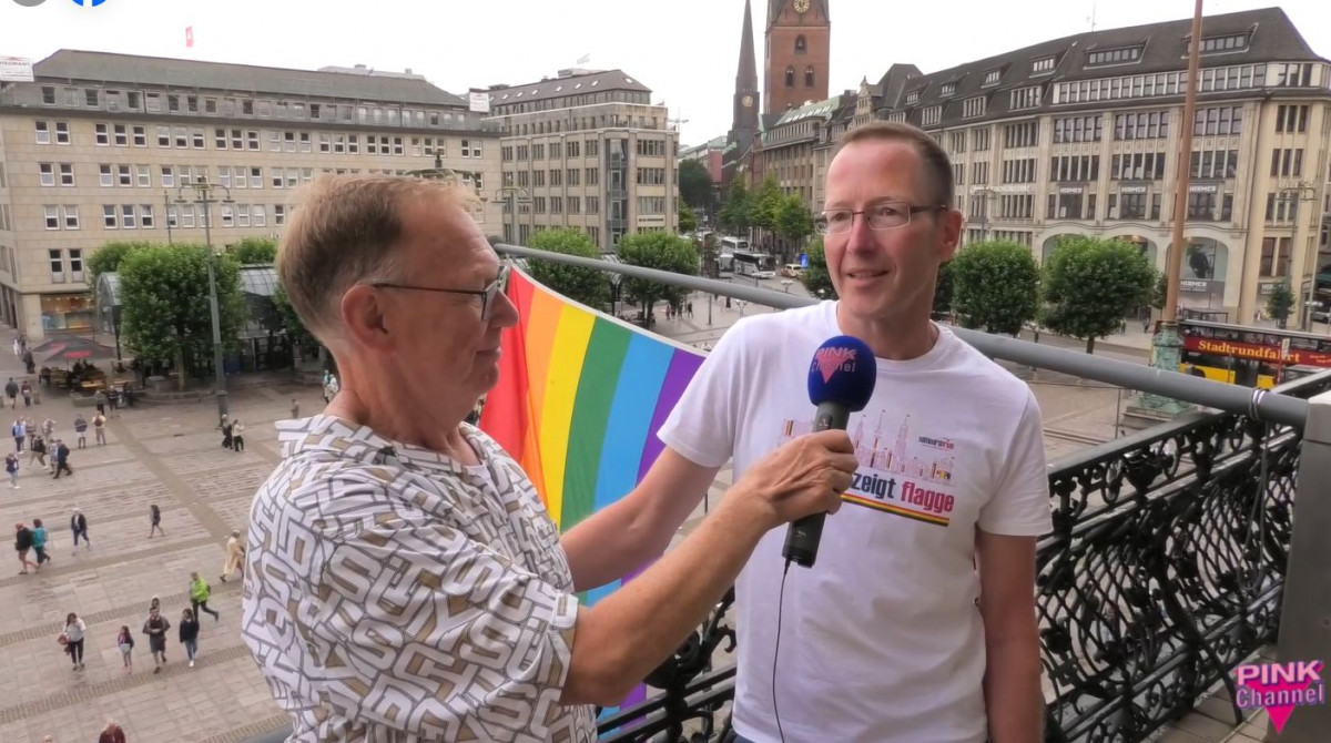 Flagge am Rathaus beschädigt. – MCC bietet Glauben und Gemeinschaftsleben (Foto). – Basis und Woge mit Antidiskriminierungsberatung. – Landesseniorenbeirat hat eine Arbeitsgruppe LSBTIQ+ – Hamburg Leuchtfeuer macht Zertifizierung von dem Konzept von „Lebensort Vielfalt“. – Hamburg zeigt Flagge mit neuen Orten. – Moderation Wolfgang Krömer, Redaktion Klaus-Dieter Begemann (Foto re.)
