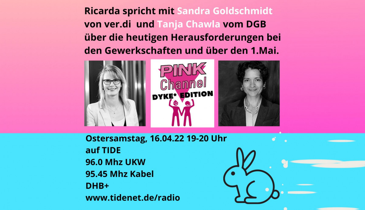 Ricarda spricht zu Ostern mit Sandra Goldschmidt von ver.di und Tanja Chawla vom DGB über die heutigen Herausforderungen bei den Gewerkschaften und über den 1.Mai. Auch Karin Schönewolf von ver.di wird zu hören sein. Und hier sofort Crazy Sally. – Frohe Ostern!