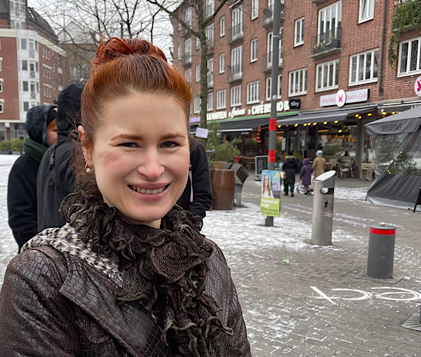 Interview von Cornelia Kost mit Gudrun Greb. – Foto: Aktion auf dem Hansaplatz am 16.12.2022.