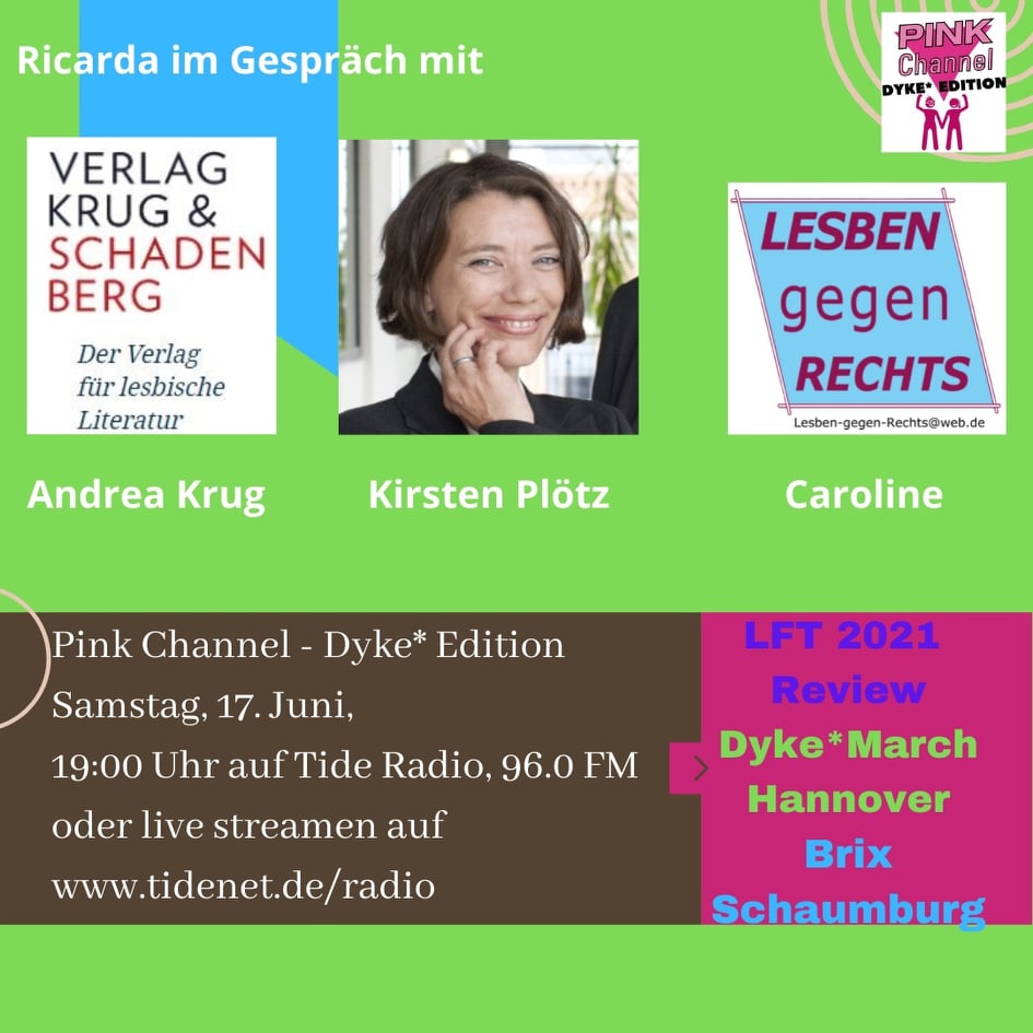 Themenschwerpunkt: Das Lesbenfrühlingstreffen 2021. Ricarda spricht mit Kirsten Plötz über ihre Studie zur Geschichte des Sorgerechtsentzug lesbischer Mütter bis weit in die 90er hinein. Mit Andrea Krug, die zusammen mit Dagmar Schadenberg den Verlag Krug & Schadenberg gegründet hat, spricht Ricarda über feministisches Publizieren. Und mit Caroline vom Bündnis „Lesben gegen Rechts“ über deren Kampagne zur Bundestagswahl und warum die AfD keine demokratische Partei und damit nicht wählbar ist. Außerdem hat Claudia am 1. Dyke* March Hannover teilgenommen und Jana vom Orga Team interviewt. – Außerdem ein Interview mit Brix Schaumburg, der ja gerade durch Deutschland radelt.