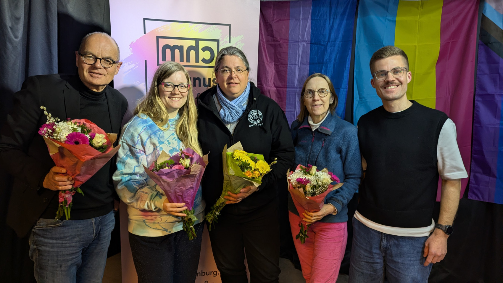 Am 24. März 2026 fand im Magnus Hirschfeld Centrum eine politische Diskussionsrunde statt zum Thema „Queerpolitik in Hamburg – wo stehen wir nach einem Jahr?“. Auf dem Podium diskutierten Andreas Grutzeck (CDU), Miriam Block (Grüne), Indira Chuda (SPD) und Carola Ensslen (Linke), Foto v.l.n.r. Diskutiert wurden steigende queerfeindliche Straftaten, der Rechtsruck, der Aktionsplan „Hamburg l(i)ebt vielfältig“, sichere Unterkünfte für queere Geflüchtete, finanzielle Perspektiven sowie das Selbstbestimmungsgesetz.