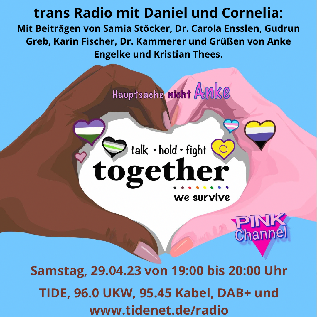 Pink Channel trans Edition mit Cornelia Kost und Daniel Schiano. Diesmal: Grüße von Anke Engelke und Kristian Thees. – Samia Stöcker zum Urteil im Prozess gegen den Angreifer, der sie 2021 fast totgeschlagen hätte. – Ein Interview mit Dr. Carola Ensslen, Fachsprecherin für Queer der Linken-Fraktion Hamburg. – Stellungnahme des Ratschlag Prostitution Hamburg. – Ein Gespräch mit der Lüneburger Gleichstellungsbeauftragten Karin Fischer zur Veranstaltung „Das Selbstbestimmungsgesetz, das Hilfesystem und Frauenschutzräume. Wie kann und sollte das Hilfesystem auf die Bedarfe reagieren?“ – Und: Ein Interview mit Dr. Kammerer, Facharzt für Psychosomatische Medizin, über Gutachten nach dem alten Transsexuellengesetz.