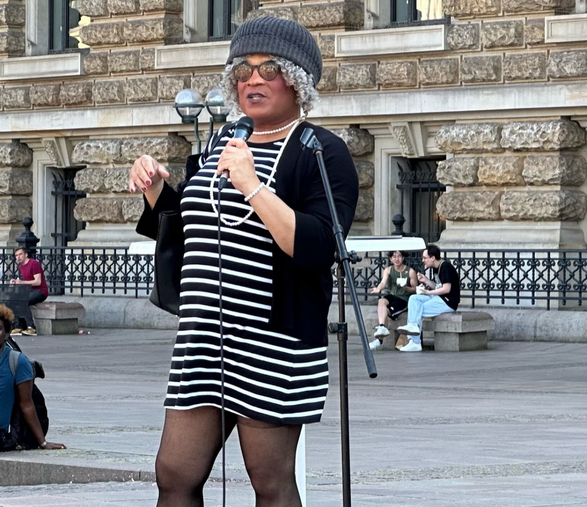Die Berliner Kabarettistin Dr. Michaela Dudley Dichterin, Diva, Doktorin und Domina in einer Person